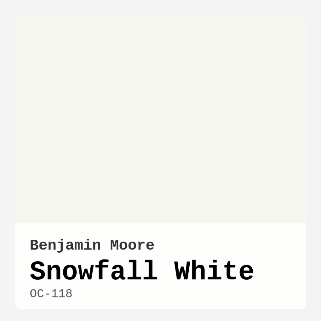 Design professionals often choose Snowfall White OC-118 by Benjamin Moore from for its timeless adaptability.