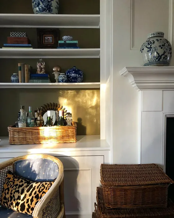 Lighting plays a huge role in how this color shows up on your walls. With a Light Reflectance Value (LRV) of 22.63%, it falls into the medium range, meaning it reflects a fair amount of light but still holds its depth. In natural daylight, you’ll notice its earthy, olive qualities shining through, while in softer or artificial light, it can take on a richer, more intimate feel. This adaptability makes it a great choice for rooms with varying light conditions, but keep in mind that in very low-light spaces, it may appear darker than expected. If you’re considering it for a small room with limited natural light, test a swatch first to ensure it doesn’t feel too heavy.