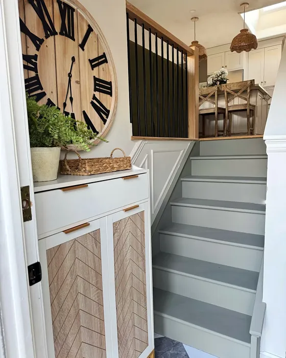 Antique Pewter leans toward the warm side of the gray spectrum, giving it a cozy feel without straying too far into beige territory. This makes it particularly effective in softening the look of cooler spaces or stark white trim.