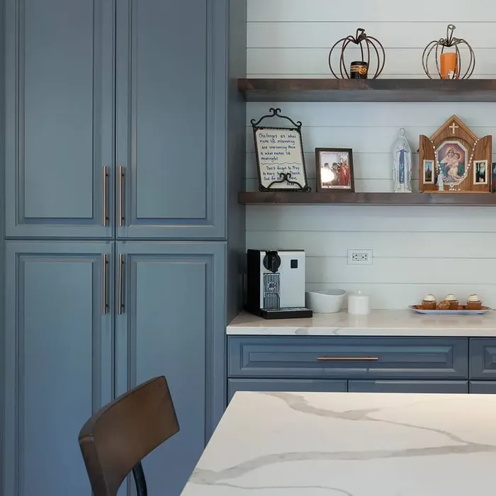 Ocean Floor pairs beautifully with whites, such as White Dove or Simply White, to create a crisp, clean look. It also complements warm woods and brass fixtures for a grounded feel, or you can use it alongside pastel accents for a more playful vibe.
