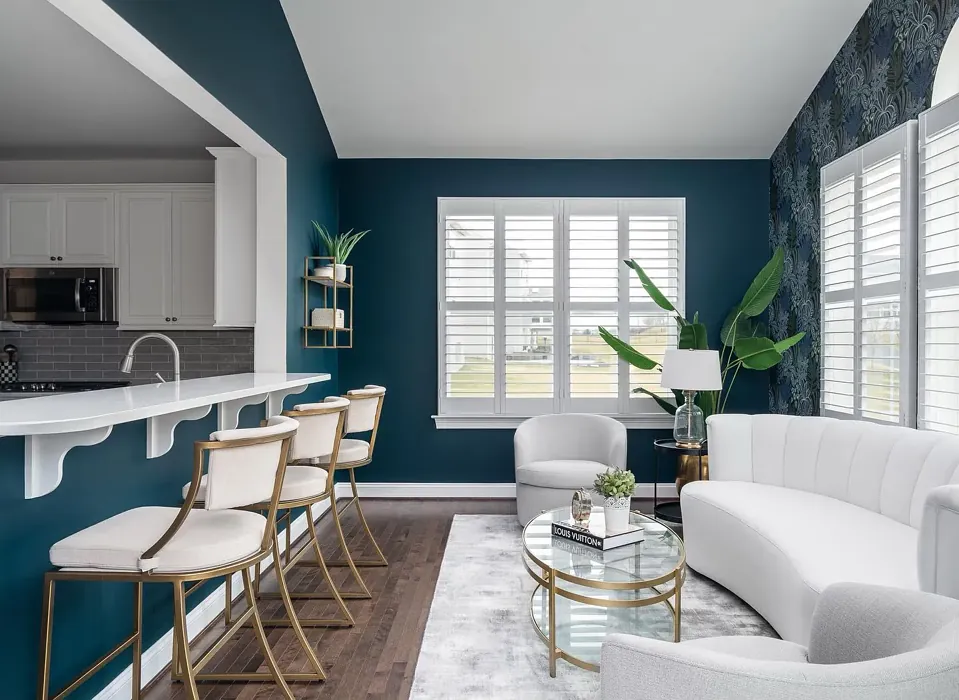 Now, let’s address the elephant in the room: can you use Pacific Sea Teal in a small space? Absolutely, but with a few caveats. Dark colors can make small rooms feel cozier—sometimes a little too cozy if you’re not careful. To keep the room from feeling cramped, balance the deep walls with lighter furniture, mirrors to reflect light, and plenty of lighting (both natural and artificial). An accent wall is another smart way to incorporate this color without overwhelming the space. And if you’re worried about touch-ups, darker hues can be tricky, so keep a little extra paint on hand for quick fixes.