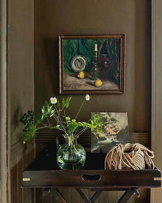 This paint leans warm, with its rich browns and taupes contributing to a cozy, inviting environment. It’s perfect for spaces where you want to feel relaxed and at home.