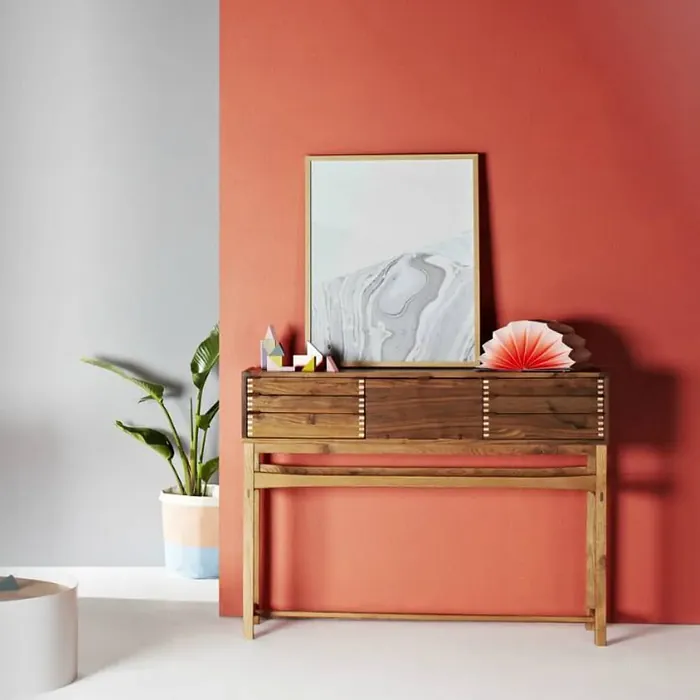 When it comes to application, Rich Coral is beginner-friendly. It’s a high-hide paint, meaning you’ll likely get full coverage in just one or two coats. It rolls on smoothly with minimal splatter, and because it’s low-VOC and odor-free, you won’t have to worry about harsh fumes during or after painting. Choose a finish based on your room’s needs: matte for a velvety, modern look (great for low-traffic areas like bedrooms), satin for a subtle sheen that’s easy to clean (ideal for living rooms or dining spaces), or semi-gloss for durability in high-traffic zones.