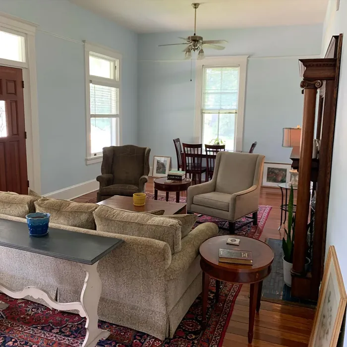 One of Constellation’s biggest strengths is its versatility. It plays well with a range of decor styles, from coastal to Scandinavian to minimalist. Pair it with crisp white trim (think Benjamin Moore’s White Dove) for a clean, classic look, or layer it with warm wood tones and textured fabrics to soften its coolness. If you love contrast, try it alongside deeper blues or even muted reds—its complementary hues—to create a dynamic yet balanced palette. And because it’s so light-reflective, it’s a fantastic choice for smaller rooms or spaces with limited natural light, where darker colors might feel oppressive.