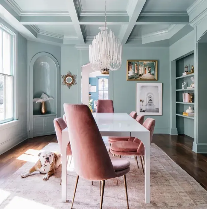Before you make any decisions, grab a sample, paint a few swatches, and see how it interacts with your home’s unique light and decor. You might find that this beautiful green-tinged blue is exactly the breath of fresh air your home has been waiting for.