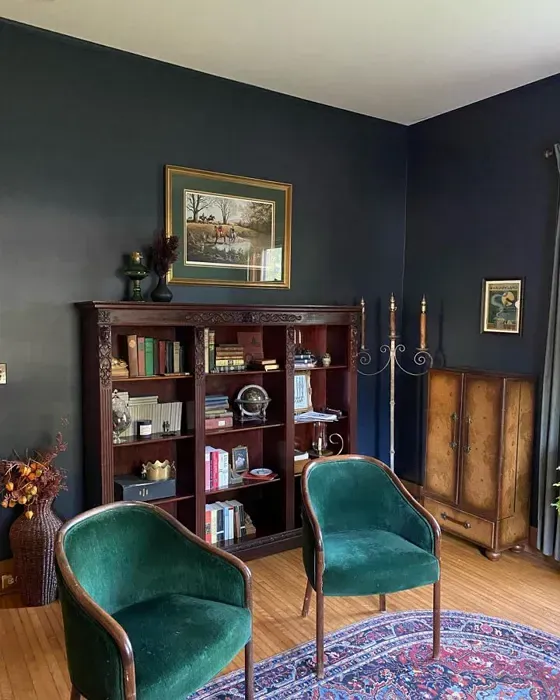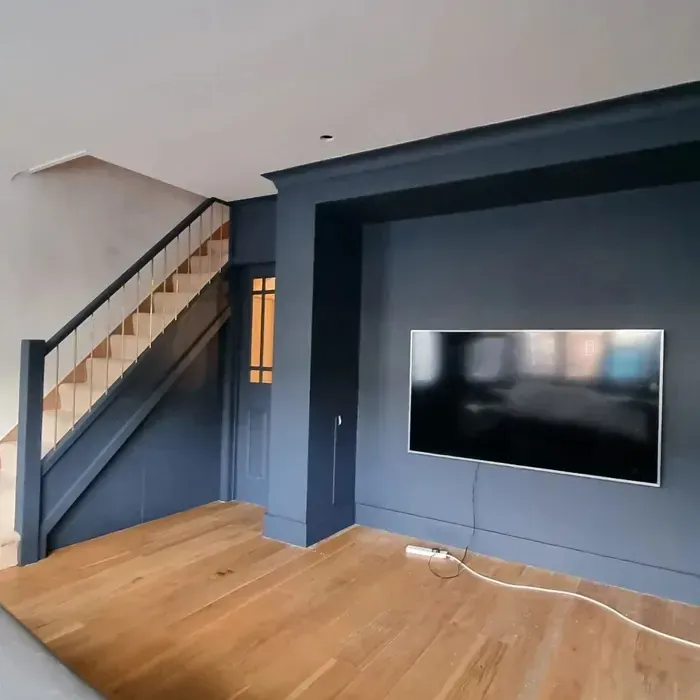 First, let’s talk about the color itself. Hale Navy is a dark blue with a muted quality that keeps it from feeling too stark or overwhelming. Its undertones are purely blue, giving it a cool, calming presence that works beautifully in both traditional and modern settings. The hex code #434B56 and RGB values (67, 75, 86) place it firmly in the navy family, but with enough depth to avoid feeling flat or one-dimensional. This isn’t your average navy—it’s a shade that feels timeless yet fresh, making it a smart investment for your home.