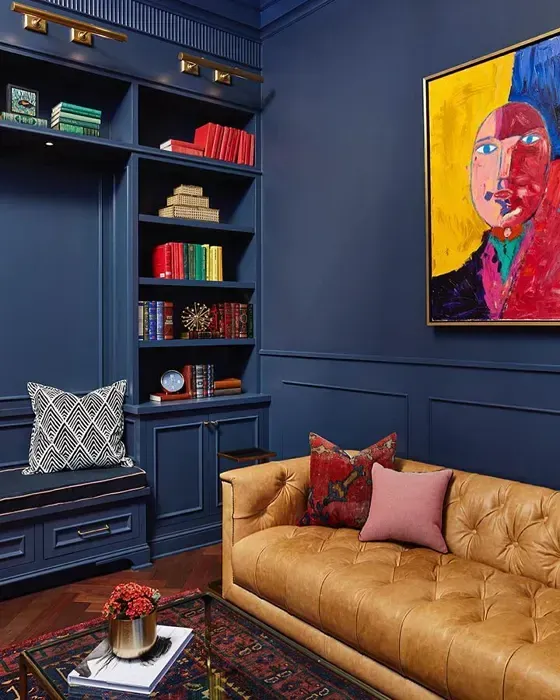 Lighting plays a huge role in how Hale Navy looks throughout the day. In natural light, it appears lighter and more vibrant, letting its true navy hue shine. But as the sun sets and artificial lighting takes over, it deepens into a moody, almost dramatic shade that creates an intimate atmosphere. This chameleon-like quality makes it perfect for rooms where you want flexibility—bright and lively during the day, cozy and serene at night.