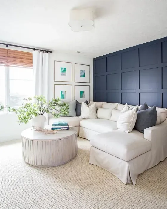 One of the standout features of Hale Navy is its versatility. It plays well with a wide range of decor styles, from coastal and farmhouse to modern and traditional. Pair it with crisp white trim for a classic look, or layer it with warm wood tones and brass accents for a more inviting, lived-in feel. Because it’s a balanced blue, it doesn’t clash with other colors easily. In fact, it pairs beautifully with both warm and cool tones, making it a dream to decorate around. Think creamy whites, soft grays, or even bold oranges (its complementary hue) for a striking contrast.