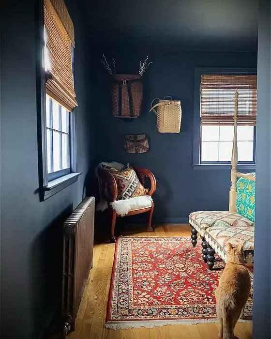 Now, let’s address the elephant in the room: how does it perform in small spaces? With an LRV (Light Reflectance Value) of just 8.36%, Hale Navy doesn’t reflect much light, which means it can make a room feel cozier—sometimes a little too cozy if the space is already tight. But don’t let that scare you off. If you love the color, there are ways to make it work. Try using it on an accent wall rather than all four, or balance it with plenty of light-colored furniture and decor. White trim, like Benjamin Moore’s White Dove, can also help keep the room feeling open and airy.