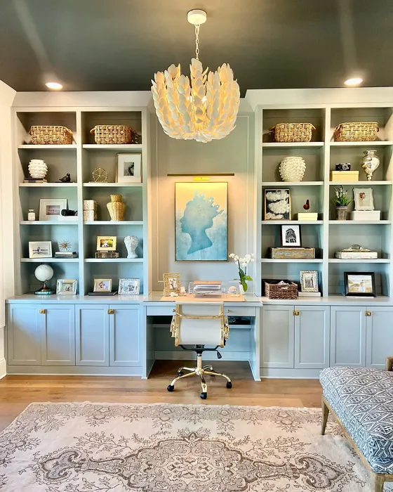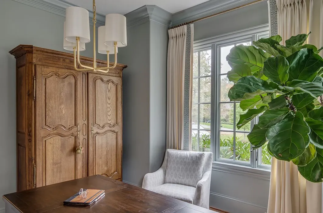 Boothbay Gray leans towards a cool undertone, with hints of blue and green that can create a refreshing atmosphere. In certain light conditions, these undertones become more pronounced, giving the color a dynamic quality that evolves throughout the day.