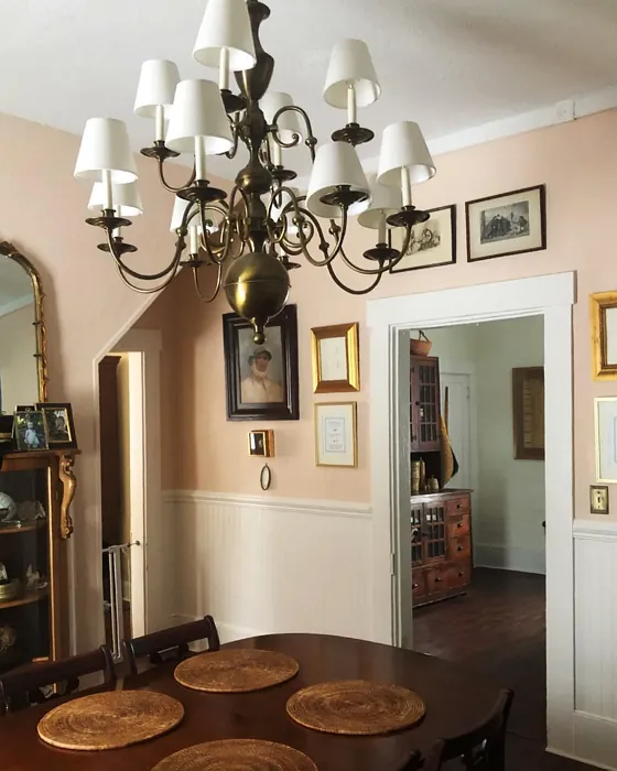One of the standout features of this color is its warmth. The red undertones give it a comforting, inviting quality that’s hard to replicate with cooler pinks. It’s the kind of hue that makes a space feel lived-in and loved, whether you’re pairing it with crisp white trim (try Benjamin Moore’s White Dove for a classic look) or rich brass fixtures that add a touch of vintage glam. And because it’s so versatile, it works across a range of styles—shabby chic, modern farmhouse, even traditional interiors with heirloom furniture.