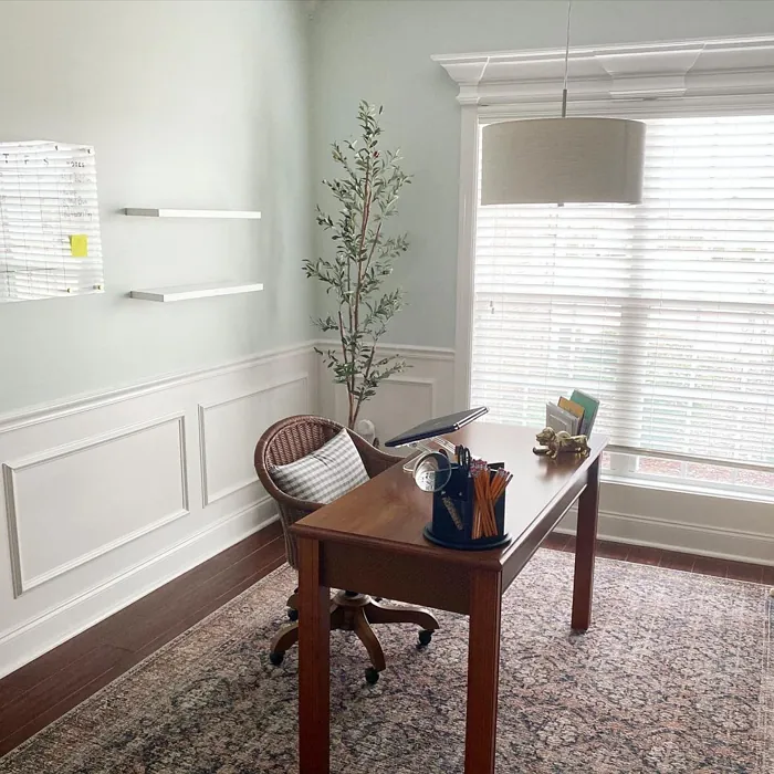 One of the most appealing aspects of Sea Salt is its adaptability. With a Light Reflectance Value (LRV) of 64%, it reflects a moderate amount of light, making it perfect for brightening up any room without feeling overwhelming. The color’s soft nature means it works well in various lighting conditions, allowing it to shift and change beautifully throughout the day. In natural light, Sea Salt appears fresh and airy, while under artificial lighting, it can take on a slightly warmer tone, making your space feel cozy and inviting.