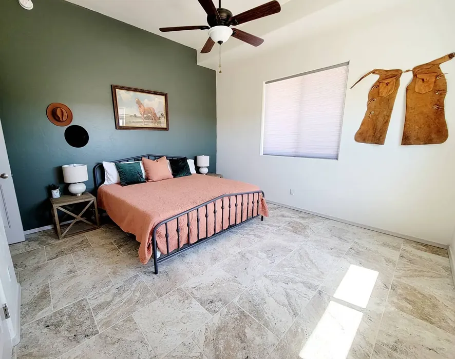 Pewter Green pairs beautifully with soft whites, warm woods, and muted pastels. Colors like cream, blush, and light gray create a soft contrast, while deeper tones like navy or charcoal can add sophistication. For a more vibrant look, consider pairing it with mustard or burnt orange accents to create a lively yet balanced atmosphere.