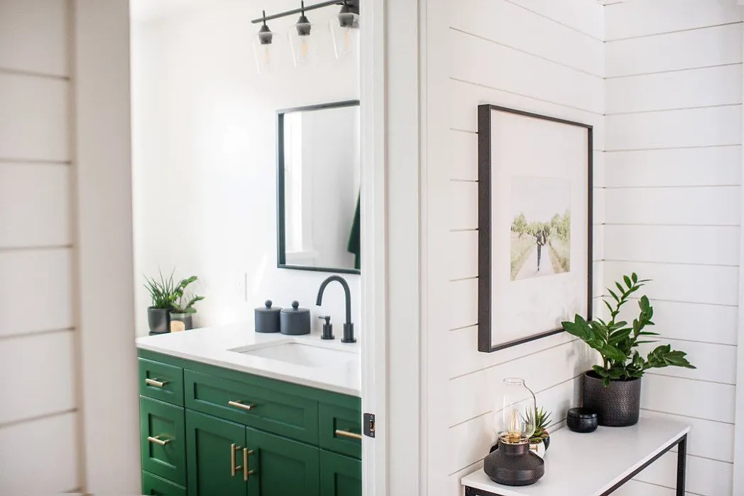 Now, let’s talk about the practicalities. Isle of Pines is not just beautiful; it’s also functional. With an LRV (Light Reflectance Value) of 12%, it doesn’t reflect much light, which can create a cozy, intimate atmosphere. However, this characteristic also means that you should be mindful of lighting when using this color. In well-lit rooms, Isle of Pines radiates a serene ambiance that feels refreshing, while in softer, artificial light, it offers a cozy and inviting feel. Be sure to assess your space at different times of the day to see how the color interacts with your lighting.