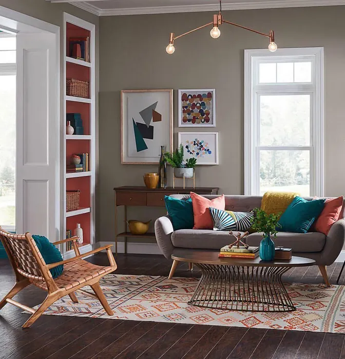 Functional Gray leans slightly warm, thanks to its beige undertones, making it a comfortable choice for a variety of settings. This warmth helps to create an inviting atmosphere, perfect for living areas and bedrooms.
