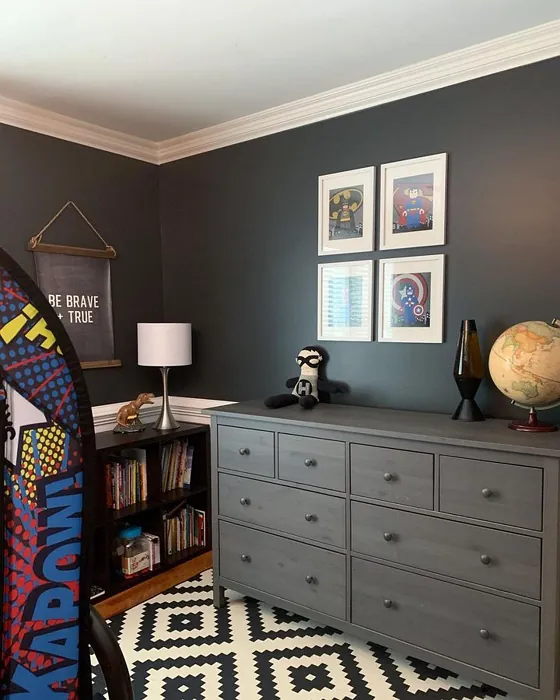 If you’re still on the fence about using Iron Ore in your home, consider the areas where it shines the most. It’s perfect for living rooms, bedrooms, home offices, dining rooms, and even entryways. It’s a color that works well with both warm and cool trim, making it incredibly versatile. Pair it with white dove for a soft contrast or go for a cooler white for a more modern edge.