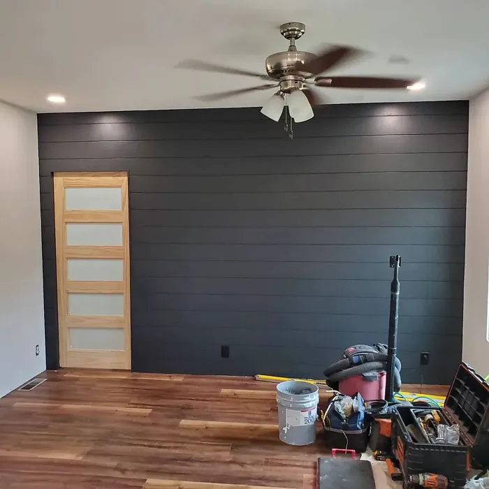 However, it’s essential to be mindful of the lighting in your space. In bright, natural light, Iron Ore reveals its softer side, showcasing a more slate-like quality that can brighten up your decor. In dimmer settings, it deepens into an alluring charcoal, adding drama and sophistication. This ability to shift with the light is one of the reasons it’s perfect for a variety of rooms, from living rooms to bedrooms, home offices to dining areas.